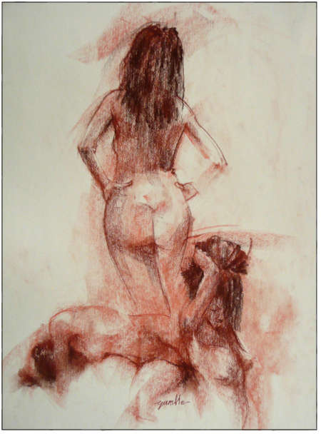In the first 20-minute pose the model assumed she stood with her back to me.