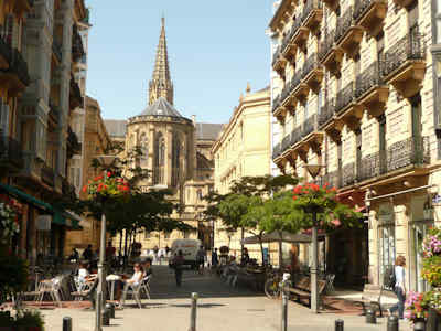 At right is the church of Santa María in San Sebastián.